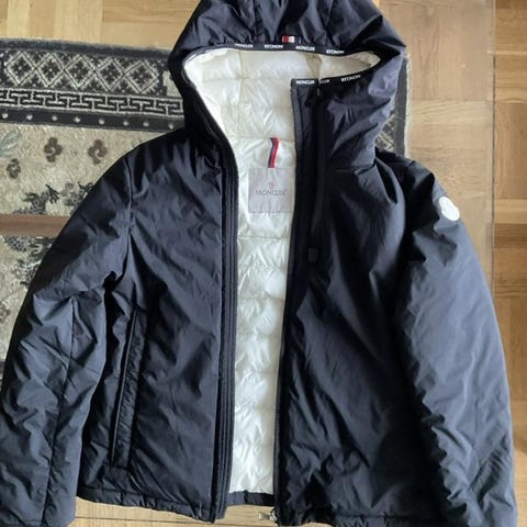 Moncler barnjacka i storlek 86 för unisex. Jackan är svart med vit huva och är tillverkad av dunmaterial. Den har dragkedja framtill och knappar på fickorna. Moncler-logotyp finns på ärmen och på insidan av jackan. Jackan är designad för att ge värme och komfort till barn.
