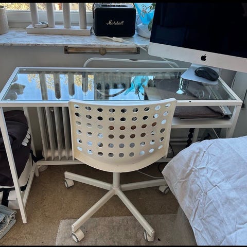 Lätt och enkelt skrivbord i glas och metall