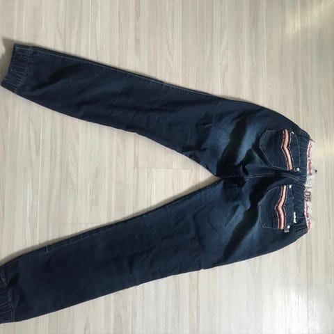 Detaljer: Bred resår i midjan, två djupa sidfickor och en bakficka