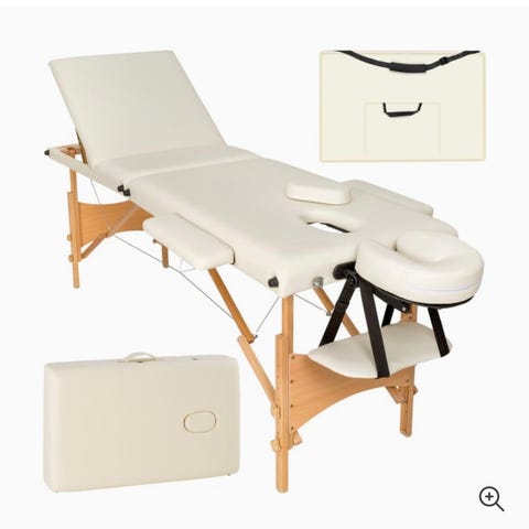 Selus professionell behandlingsbänk, hopfällbar, vinröd, ställbara armstöd, ställbart huvudstöd och lös välvd kudde.