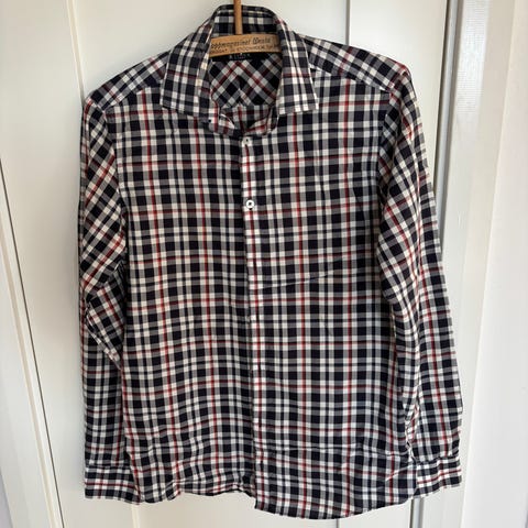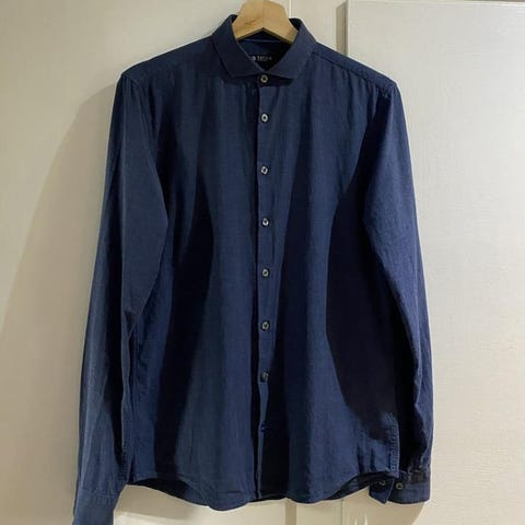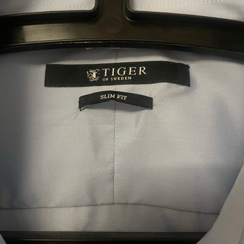 En grå skjorta från Tiger of Sweden med långa ärmar och knappar framtill. Skjortan har en smal passform och en klassisk krage. Fint skick. Storlek M. Herr