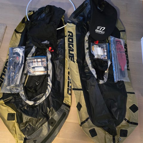 Feelfree lure 11.5 V2 utrustad med roder och fotstyrning samt mjuk och justerbar sits. Glasfiberpaddel TNP Catch som är riktigt styv, bra spöhållare och kajakvagn medföljer.