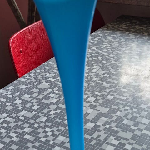 En liten grön färg har fastnat på ett ställe när den handmålades annars i utmärkt skick.