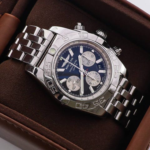 Servad 2018 för 18.100:- och sedan nu 2024 för 20.700:-. Den kommer med originalband i rostfritt stål och original breitling kalvskinnsarmand.