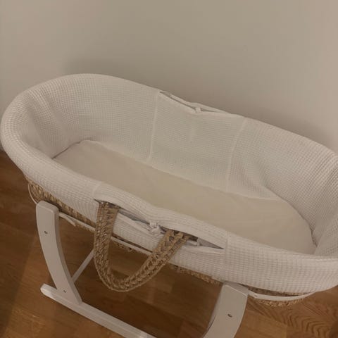 Hantverksmässig tillverkad babyvagga byggd i ask säljes.