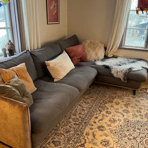 Jag älskar soffan men den är tyvärr för stor för vårt hem. Den är mycket bekväm, stilren och fungerar perfekt.
