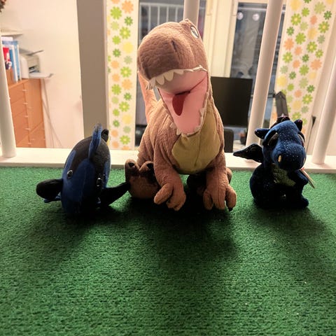 En samling av vintage mjukisdjur och dockor i olika storlekar och färger. Inkluderar flera mjukisdjur som sköldpaddor, en vit hund, en grön krokodil samt olika dockor bla Rubens barn klädda i olika kläder. Materialen varierar mellan mjuk plysch och tyg. Passar för samlare eller som leksaker.