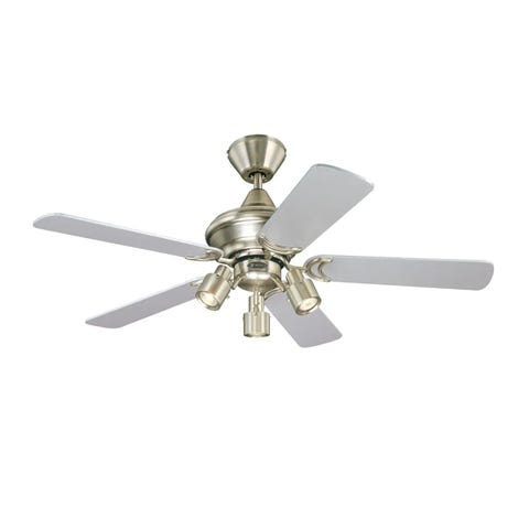 Helt ny tak fläkt lampa. Snygg takfläkt Princess Trio i trä- och rottinglook Den dekorativa takfläkten Princess Trio imponerar med sin eleganta design av metallhöljet med polerad mässingsfinish. Fläkten har fyra vändbara blad med rottingapplikationer och en genomgående fin trälook i valfri ek eller mahogny. De skapar en elegant atmosfär. Princess Trio-funktionerna är utrustade med belysning: Tre förtrollande lampskärmar av elegant satinerat glas ger stämningsfull belysning. Ljuskällorna ingår inte i leveransen. Den trestegsfläkten kan manövreras med dragströmbrytaren. Om takhöjden är 350 cm eller mer rekommenderas en lämplig förlängningsapplikation (se tillbehör). Funktionen framåt eller bakåt - justerbar via det integrerade reglaget - används för att växla mellan sommar- och vinterdrift. Sommarfunktionen används för kylning vid varmt väder, medan vinterfunktionen använder värmecirkulation för att spara upp till 30% på uppvärmningskostnaderna. Tekniska data Effekt: 45/32/23 watt Varvtal: 210/145/85 rpm Särskilda egenskaper Tack vare den extremt tysta motorn är Princess Trio takfläkt också lämplig för användning i sovrum.
