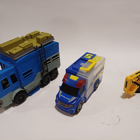Säljer dessa leksaker som paket. Flygplanet har knappar som låter som start och landning av flygplan. Grävmaskinen har metalliska delar som inte lämpar sig för de allra minsta (4+).