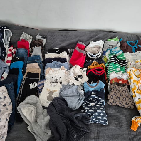 Vissa plagg är välanvända och andra aldrig använda alls. Majoriteten är i väldigt fin kvalitet.