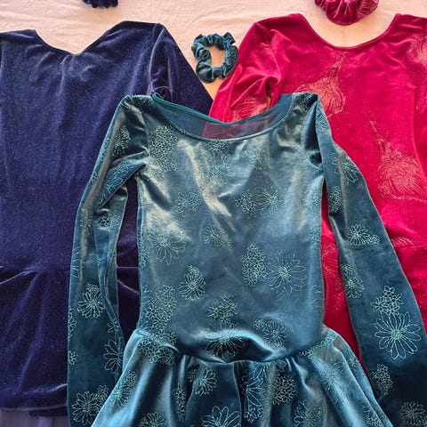 Konståkningsklänning röd långärmad med öppen rygg för kvinna