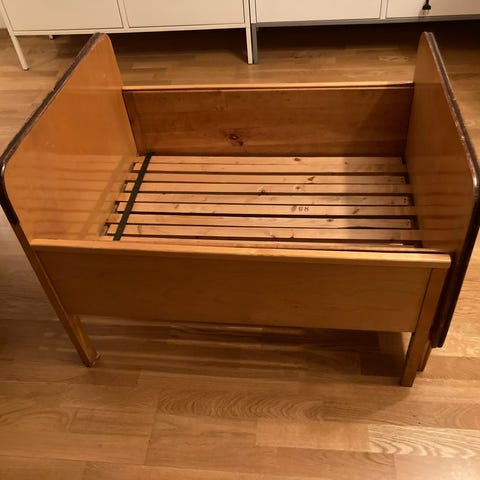 Barnsäng med maddras och bebiskydd
