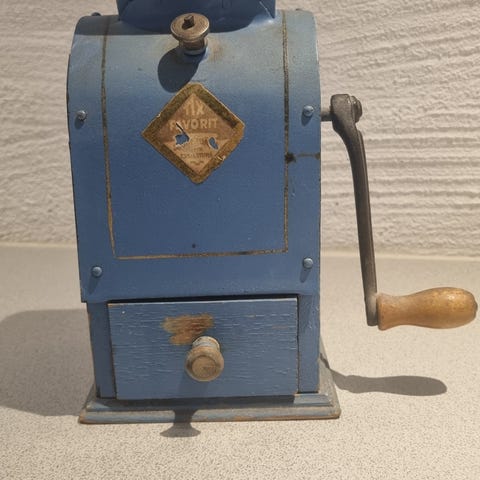 En manuell kaffekvarn från förr.