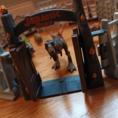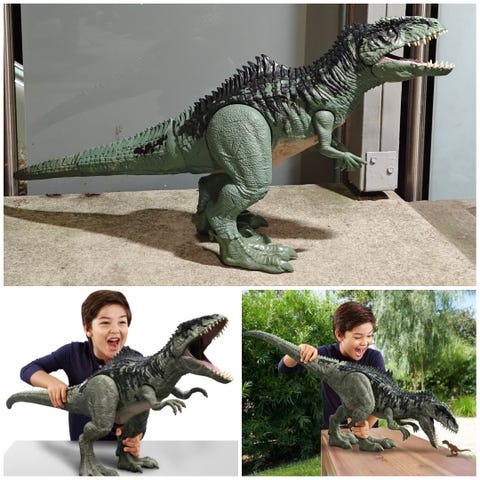 Jurassic world /park velociraptor mask chomp 'n roar. Den sitter på huvudet och gör olika ljud beroende på hur man öppnar munnen.
