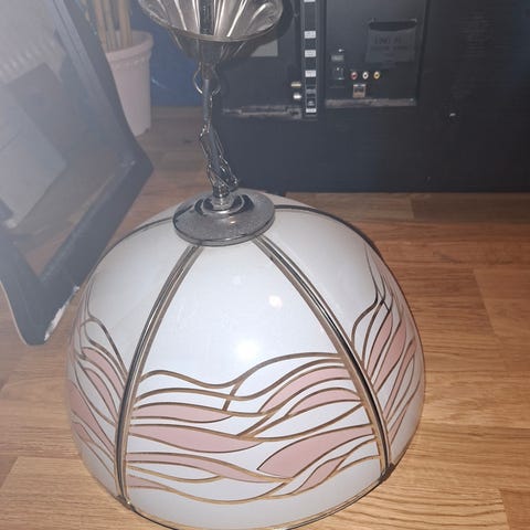 Gammal taklampa i perfekt skick. 40-tal. Det enda som jag bytt är elkontakten för att den skulle passa i takets uttag. 40 cm från överst till nederst. Finns i centrala Piteå och hämtas där.