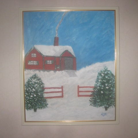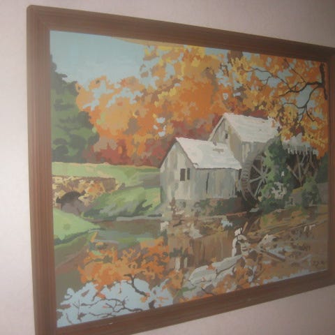 Oljemålning trädgård på sommaren av IJ = Inez Jakobsson min mamma. Längd 59 cm, höjd 49.5 cm.
