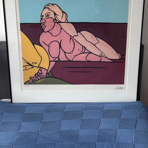 Färgerna domineras av nyanser av rött och brunt. Passar för inredning och samling.
