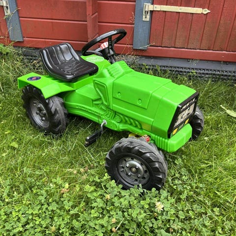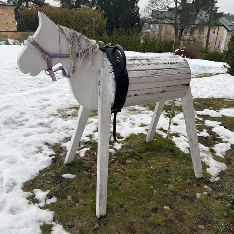 Äldre trampcykel i form av travhäst med sulky. Fungerar utmärkt.