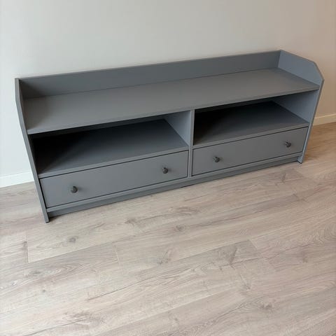 Äldre modell av TV-bänken Havsta med stängda luckor. Bra förvaring och smart sladdhantering. Repa på ovansidan, se bild.