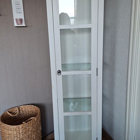 Stilrent vitrinskåp, Amadeus serie i valnöt från Ljungberghs möbler, mått 203,5x130x31,5.