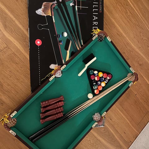 Set bestående av ett fotbollsspel och ett biljardbord,hokey bordtennis.