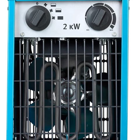 Biltema Värmefläkt med effekt på 2000 W, färg vit. Utrustad med två reglage för inställning av värme och fläkthastighet. Anslutning för 230 V, 50 Hz. Modellnummer 46-223.