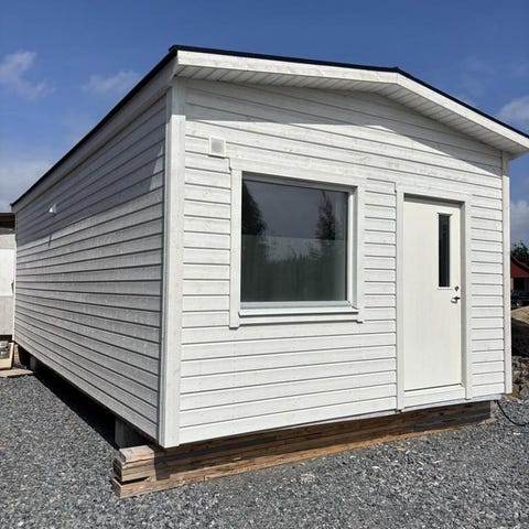 Orenoverad bostadsmodul på 38m2 utan panel med kök och badrum.