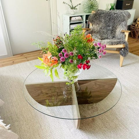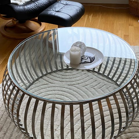 Runt soffbord från House Doctor i rotting med stomme av metall och medföljande glasskiva.