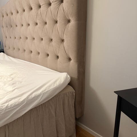 Säljer vår sänggavel från Jensen, blå sammetstyg, nypris är 9500 kr. Passar 180 cm säng.