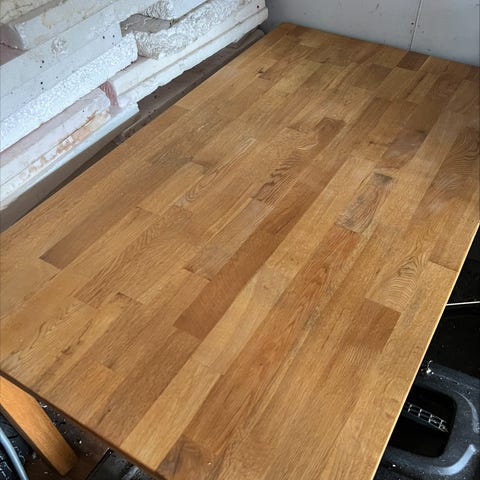 Bra matsalsbord med plats för 10-12 personer när klaff (55cm), som medföljer används.
