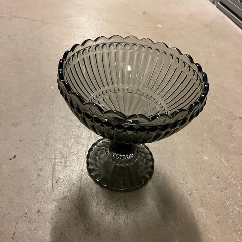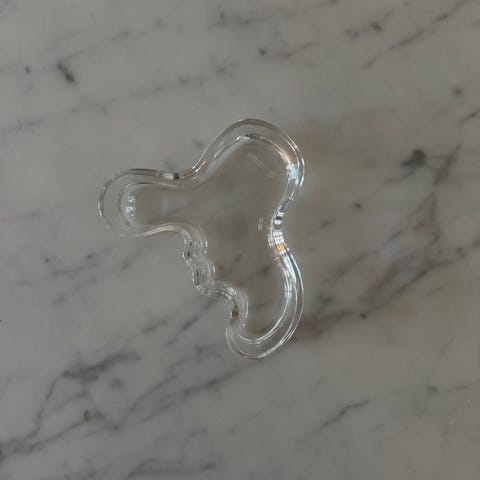 Iittala glas skål i transparent och flerfärgat glas. Skålen har en dekorativ form och kan användas för servering eller som prydnadsföremål.