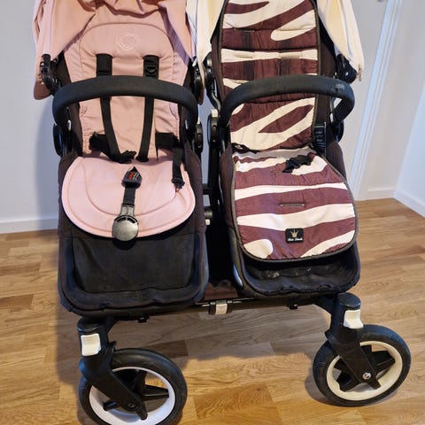 Välskött Bugaboo Donkey 2. Kan användas med två sittdelar eller sittdel + sidokorg. Vändbara och justerbara sittdelar, avtagbar klädsel för enkel rengöring.