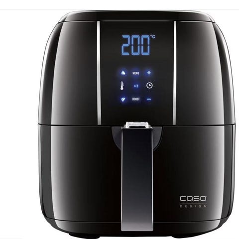 Silver Crest fritös med cool-zone teknik och löstagbar timer. Den har en effekt på 2300W. Fritösen har en LCD-skärm och ett lock. Måtten på .fritöskorgen är cirka 26 cm på höjde.