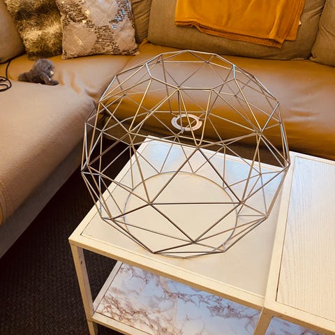 Snygg taklampa i industristil med två ljuskällor och metallburar runt glödlamporna. Stabil upphängning med kedjor och stång i borstat stål. Ger ett modernt och rustikt uttryck som passar både kök, vardagsrum och matplats. Fungerar utan problem och är i fint skick. Säljs på grund av flytt.
