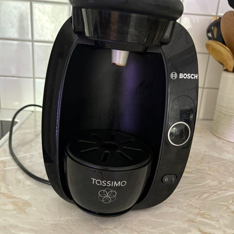Bosch Tassimo Joy kaffemaskin i svart färg. Maskinen är kompakt och lätt att använda för att brygga olika typer av kaffe och varma drycker med Tassimo kapslar. Passar för hemmabruk och mindre kontor.