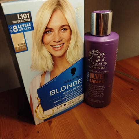 Nu med en ny stärkande anti-yellow efterbehandling som tillför intensiv näring och gör hårstrån mindre benägna att brista: Håret är 5 X starkare**. Formulan är dessutom berikad med lila färgpigment för att förebygga gula skiftningar i håret. ** Instrumentellt test.