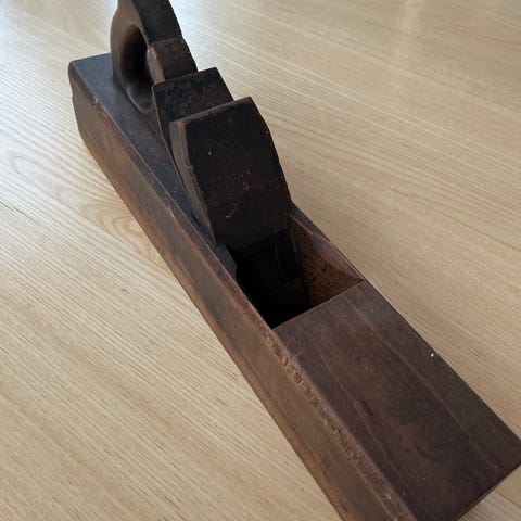 Flera äldre trä hyvlar , stor kista, sockerlåda mm
