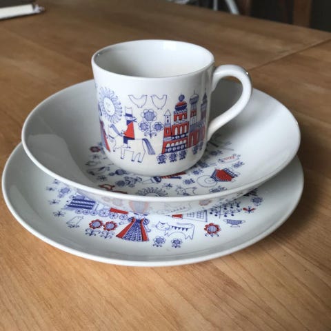Arabia Perho kanna, dekoren designad 1958 av Birger Kaipiainen. Själva kannan är designad av Kaj Franck.