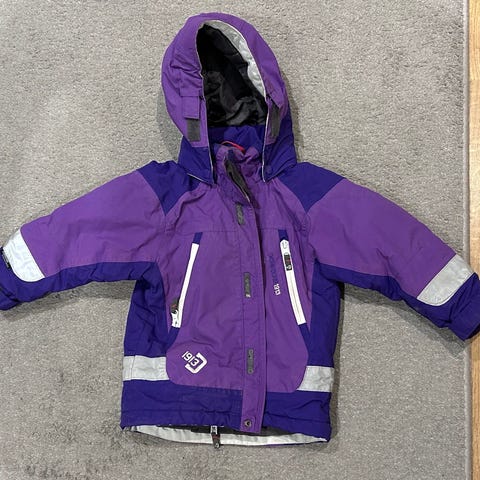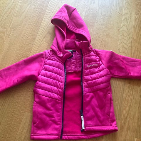 Didriksons dunjacka i gul färg, barnstorlek 90, unisexmodell. Jackan är tillverkad av dunmaterial och är lämplig för barn. Den har en huva och är designad för att ge värme och komfort.
