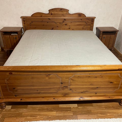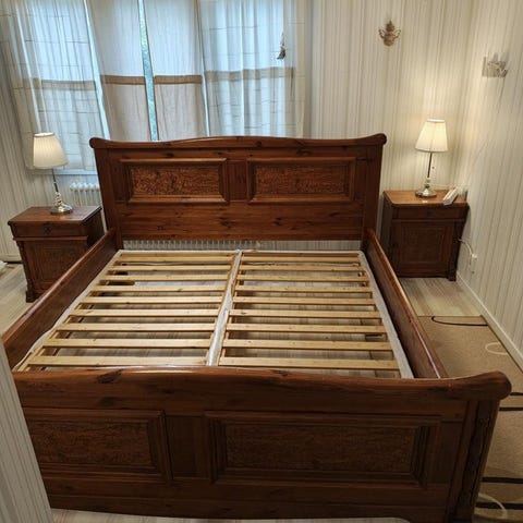 Sängram 180x210 extra lång 2 nattduksbord och ribbotten