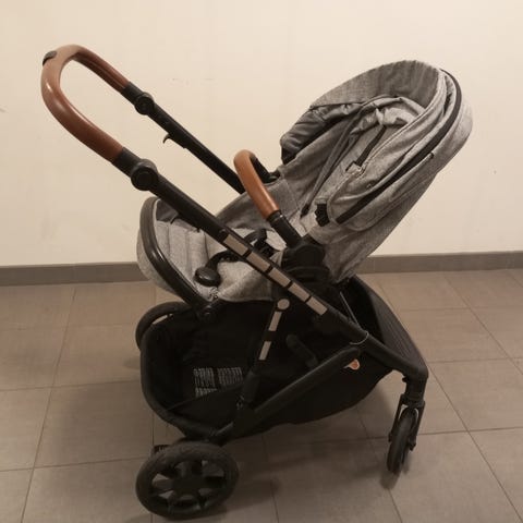 Grå Britax Go Next, fempunktssele, bakhjul bytta hösten 2024. Stor förvaringskorg under vagnen, ställbart handtag. Mycket fint skick. Ingår utöver sittdel och liggdel även en bygel till sittdelen, en snacksbricka samt ett svart regnskydd. Endast upphämtning.