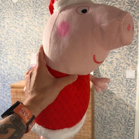 Greta Gris mjukisdjur set bestående av flera olika mjukisdjur i varierande storlek och färg. Setet inkluderar figurer som Peppa Pig och andra djur, samt en rosa väska med handtag. Leksakerna är tillverkade i mjukt material och är avsedda för barn.