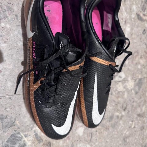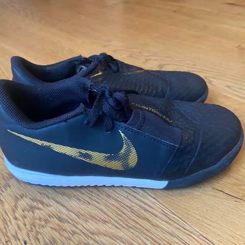 Nike Phantom GT Academy IC är inomhusskor i storlek 40, designade för fotboll på inomhusunderlag. Skorna är svarta med vita detaljer och tillverkade i syntetmaterial för hållbarhet och komfort. De har en gummisula med mönster för bra grepp på hårda ytor.