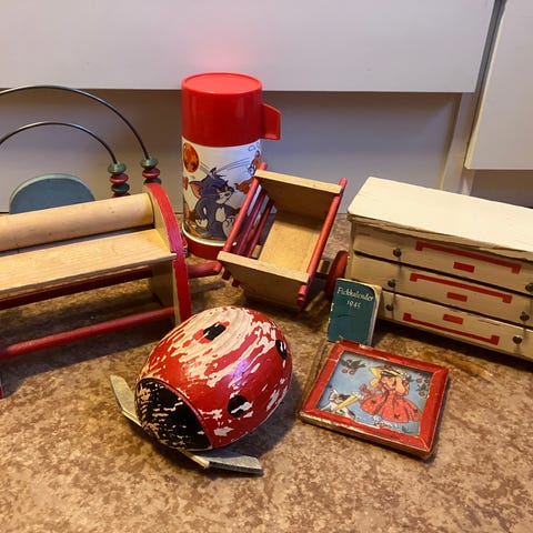 Två st gamla lastbilar i trä,har inte så mkt mer info, bra skick o samlarobjekt.