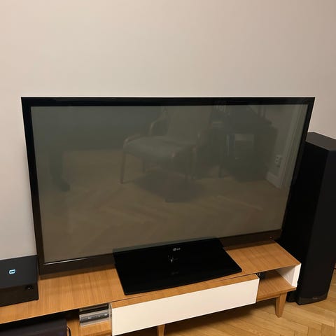 Svart byrå på hjul med 2 lådor, äldre fungerande TV märke Philipps ingår på köpet.