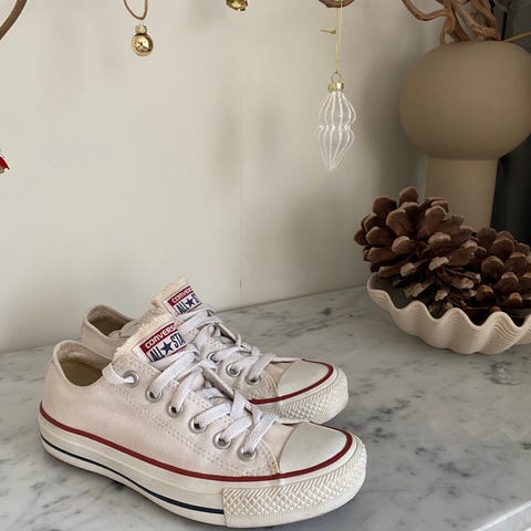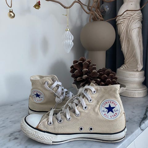 Säljer ett par höga Converse sneakers i storlek 37 – blåa, dam. Skorna är använda men i fint skick och redo för många nya äventyr. Den klassiska Converse‑stilen ger en tidlös, avslappnad look som funkar till allt från vardagsjeans till kjol. Perfekta för promenader, fika med vänner eller när du vill ge outfiten lite extra attityd och personlighet.