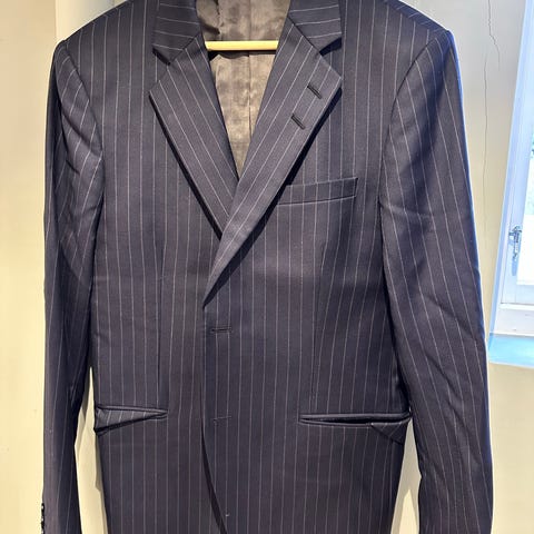 En av kostymerna är har tjockare tyg 75% ull och därför upplevs som mindre i axlarna så passar bäst till stl 46