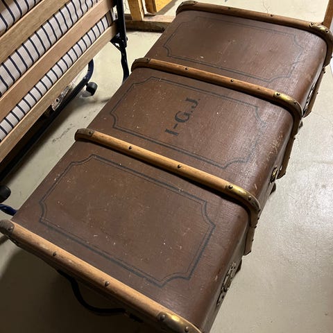 Vintage Resväska/koffert med trä- och metallbeslag