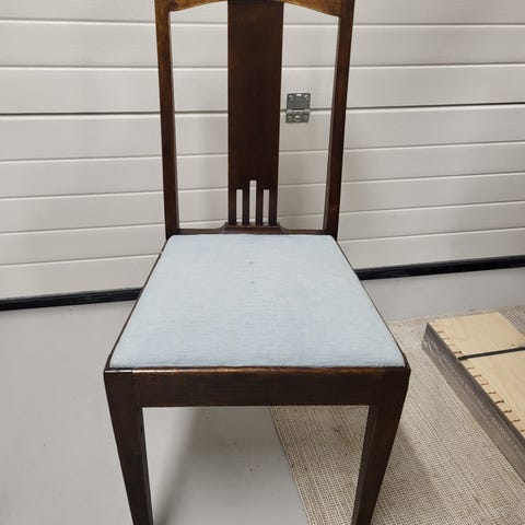 6 st antika engelska ekstolar. Stolarna är stabila, renoverade inunder av finsnickare. Sitthöjd ca 48 cm. Ryggstöd 105 cm högt. Löstagbar mycket fräsch dyna på alla 6 stolarna, ockrafärgat sammetsliknande vackert möbeltyg.