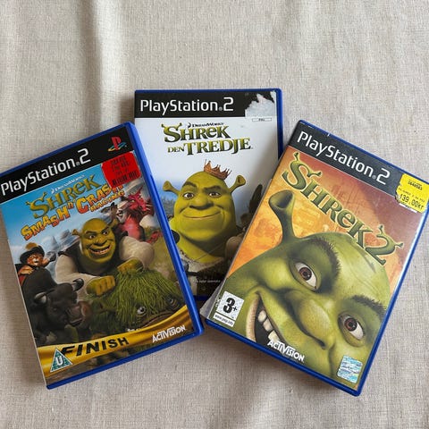 PlayStation 2 spel med titlarna Shrek 2, Bolt och Peter Jackson's King Kong. Spelen är i standardstorlek och designade för PlayStation 2 konsolen. 40kr st frakt ingår ej